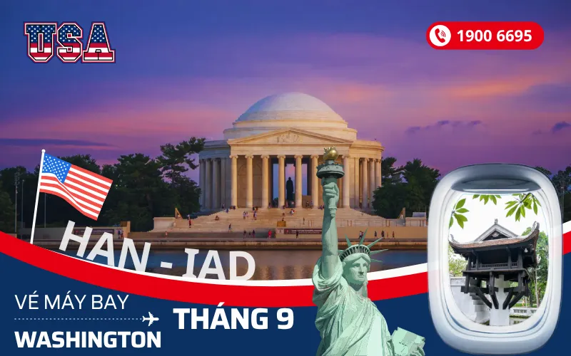 Tháng 9 là thời điểm lý tưởng để đặt chuyến bay từ Hà Nội đến Washington D.C. khi thời tiết mùa thu dễ chịu và giá vé thường rẻ hơn mùa cao điểm. Bài viết này sẽ giúp bạn tìm được lộ trình bay tối ưu cùng những mẹo săn Vé máy bay Hà Nội đi Washington Mỹ tháng 9 giá tốt.