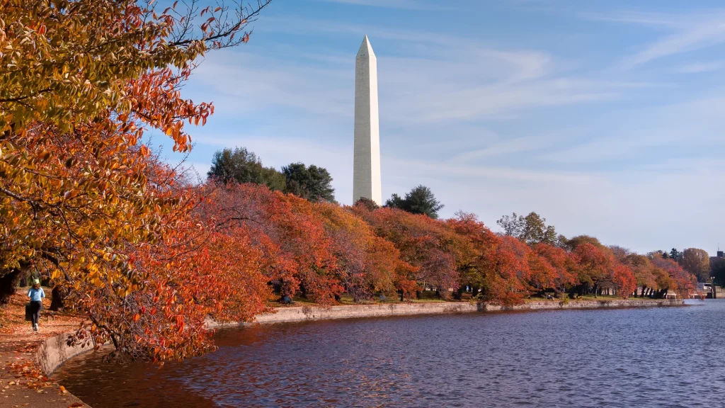Mùa xuân (cuối tháng 3 đến tháng 5): Đây là thời điểm đẹp nhất với thời tiết mát mẻ, dễ chịu. Và đặc biệt là mùa hoa anh đào nở rộ (thường vào cuối tháng 3, đầu tháng 4) xung quanh Hồ Tidal Basin. Tạo nên cảnh quan thơ mộng. Tuy nhiên, đây cũng là mùa cao điểm du lịch và có nhiều chuyến đi học của trường, nên có thể đông đúc.