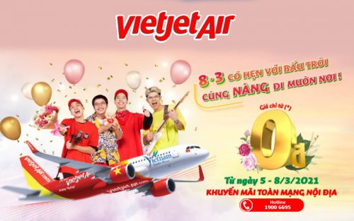 Vietjet Air khuyến mãi Vé máy bay 0 đồng ngày 8/3 cùng nàng đi muôn nơi....