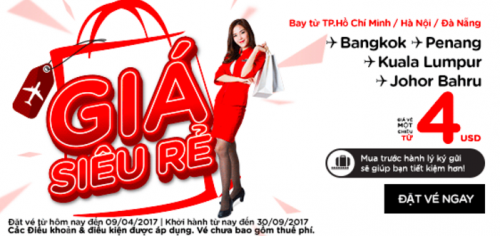 Tưng bừng khuyến mãi vé Air Asia chỉ từ 4 USD
