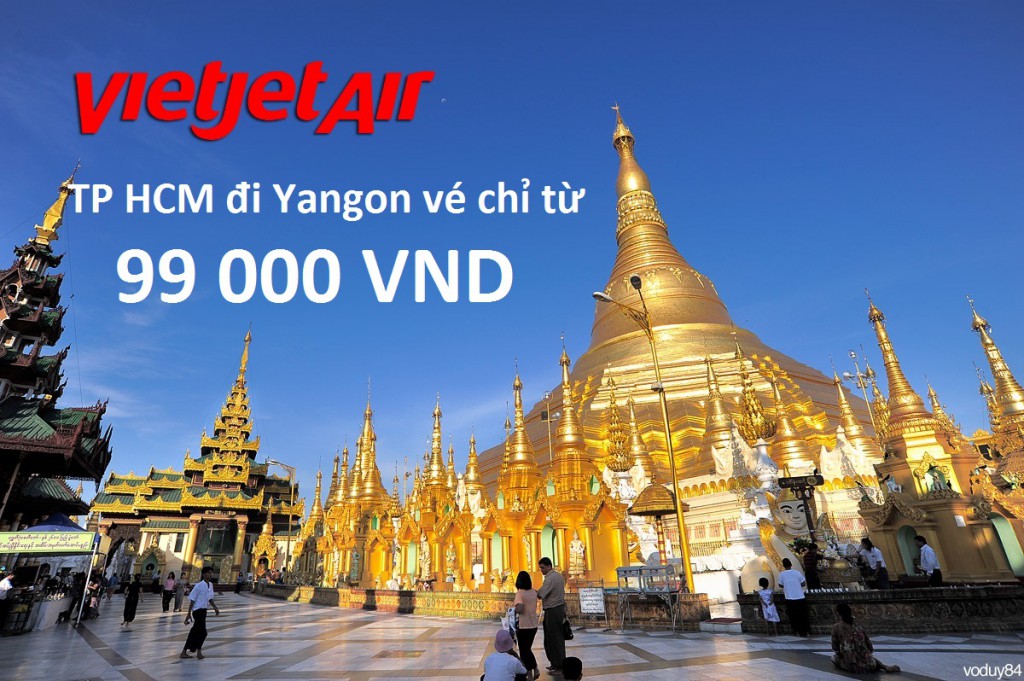 Hãy tham gia chương trình khuyến mại Vietjet Air ngập tràn vé rẻ chỉ từ 99 000đ đi Yangon ngay từ hôm nay, chương trình khuyến mãi chỉ áp dụng cho những chuyến bay khởi hành từ TP.HCM đi Yangon và trong khoảng thời gian từ tháng 07 đến tháng 12/2016.